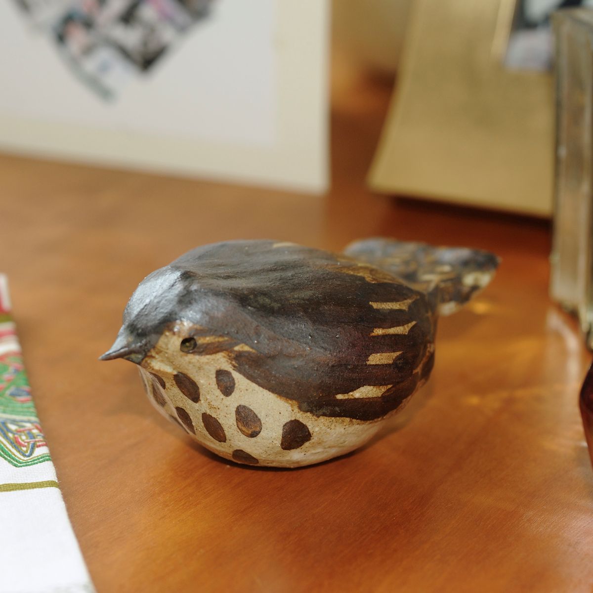 The largest bird I do, the thrush's distinctive spotted breast and fanned tail are individually sculpted and decorated.